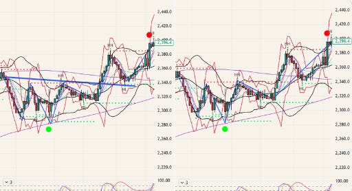 나야 볼린저도 이용하니까 더 밑에서 잡는경우도 많지만. 일단 가장 개념적인 설명을 해봄. 봐 밑으로 쪼개 들어가니까 자리가 나온다고. 저 시점에서 내가 이게 위로 갈거라고 "예측"이나 "확신"을 했을까?? 아니야. 그냥 들어갈 자리에서 "대응"해서 들어간거야. 물론 내가 맞았지만.