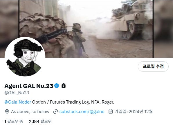 직접 갈요원 계정을 팔로우 신청 하셔서 살펴보셔도 무방합니다. https://x.com/GAL_No23