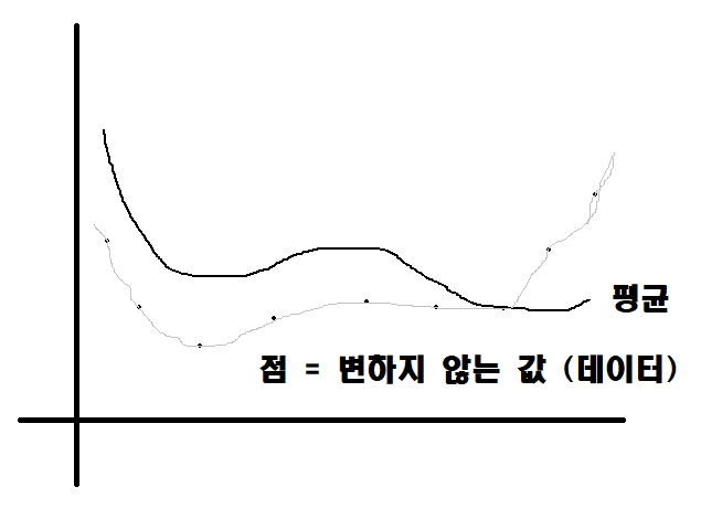 "필연적"으로 이 지점을 지나야 합니다. 바로 "데이터"가 "평균"과 같거나 가까운 지점입니다.