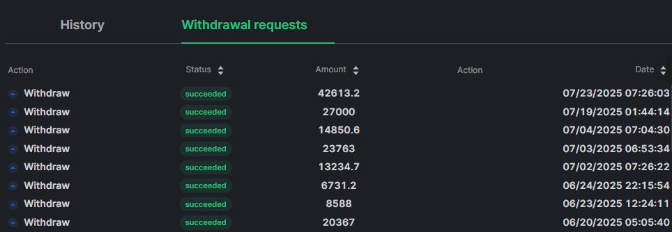 4월중순 ~ 6월중순 상당한 슬럼프 기간이었음. 전부 데일리 트레이딩으로만 매매. 오버나잇 없음. TPT 측과 수익을 9:1로 나눔. 한국인 원래 안해주는데 본인에게 특별히 PRO+ 가장 높은 단계의 계정으로 운용하게 해준 상태임.