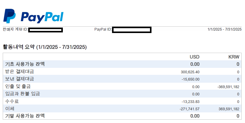 (수수료 및 페이팔 수수료 비용 포함. 수익은 입금받은 기준.)