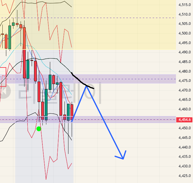 아 이게 반등이겠다~ 가 아니라~ 아 20이평의 각도가 하방이니까 20이평 맞고 내려가는
