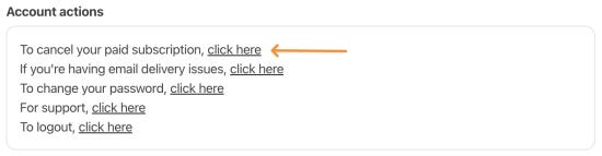 3. 페이지 맨 아래쪽에 “To cancel your paid subscription, click here” 가 있는데 click here 클릭.