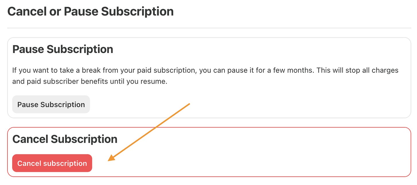 4. Cancel Subscription 빨간색 버튼 클릭.