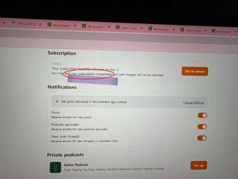 5. 그 이후 주소창에 https://www.galno.org/account 입력하여 이동하면. 여러 탭들 중 아래와 같이 구독 상태에 대한 탭이 있음.