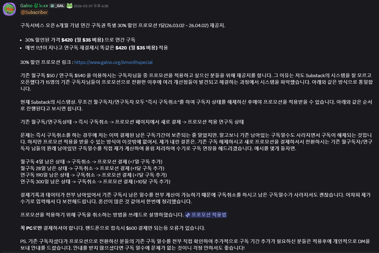 [프로모션 적용 방법] - 신규 구독자님들은 상관없음. 기존 구독자님들만 해당.