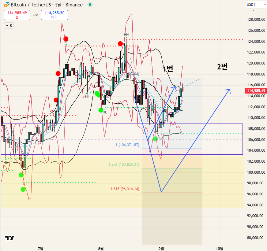 $BTC - 25.09.13이어서GalnoSep 12, 2025∙ Paid43ShareGalno$BTC - 25.09.06자 봅시다 봅시다. 비트코인. 일단 데일리마켓 채팅방에서 했던 말을 다시 끌어오겠음…Read morea month ago · 34 likes · Galno오늘은 할 얘기가 많다. 왜냐면. 애매한 자리에 위치해 있기 때문이다. 그래서 크게 두가지 시나리오로 풀어서 얘기하겠다.우선 이게 저번 글에서 제시했던 두가지의 시나리오고. 본인은 2번 경로가 더 자연스럽다고 판단해왔었는데. 그 이유는.This post is for paid subscribersSubscribeAlready a paid subscriber? Sign inPreviousNext
