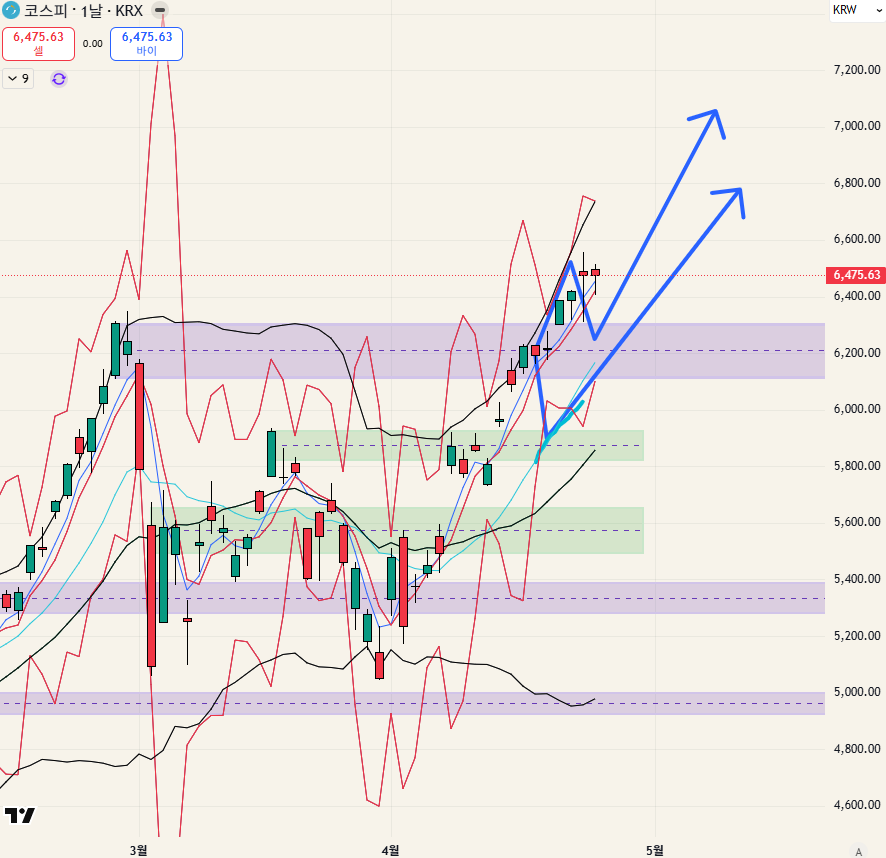 주봉이 6200 최상단 매물대를 몸통으로 돌파해서 마감해주었다. 이번에 새로 생길 주봉의 캔들 흐름은 이런식이 될 가능성이 매우 높다고 본다. 6200 매물대를 밑꼬리로 딛어주면서 양봉마감. 뭐 그냥 올리겠다면 밑꼬리조차 안만들겠지만 말이다. 일봉보자.